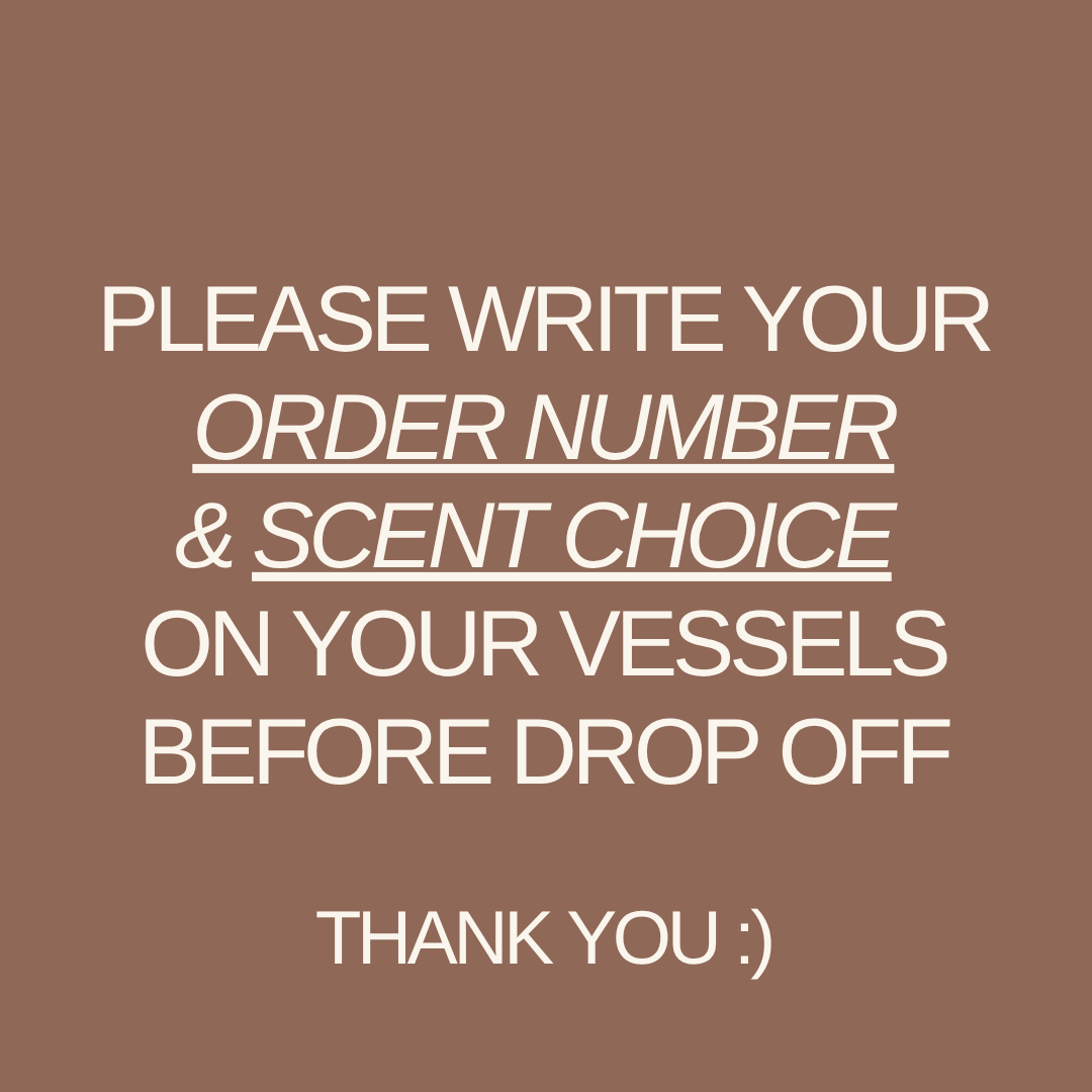 *PLEASE LABEL EACH VESSEL WITH YOUR ORDER # AND SCENT CHOICE*